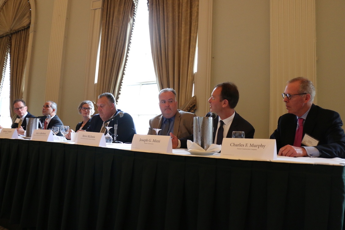 Presenters included: Richard T. Anderson, past president of the New York Building Congress; Jay Badame, AECOM Tishman; Sabrina L. Kanner, Brookfield Properties; Gary LaBarbera, Building and Construction Trades Council of Greater New York; Steve McInnis, the New York City District Council of Carpenters; Joseph G. Mizzi, Sciame Construction; Charles F. Murphy, Turner Construction Company; and Edward V. Piccinich, SL Green Realty Corp.