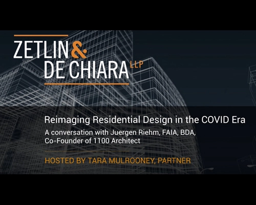 Tara Mulrooney, Partner at Zetlin & De Chiara and Juergen Riehm, Co-Founder at 1100 Architect, discuss how much residential design has changed since the Covid-19 pandemic. They address the design trends, the differences between urban and suburban homes, the need for flexible space and the new emphasis on air quality, privacy and noise control. Watch the full interview above, or excepts by topic from the playlist below.